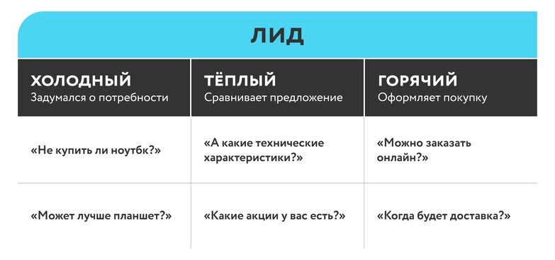 - холодні ліди — тільки довідалися про продукт або компанію, вимагають інформування та довіри;